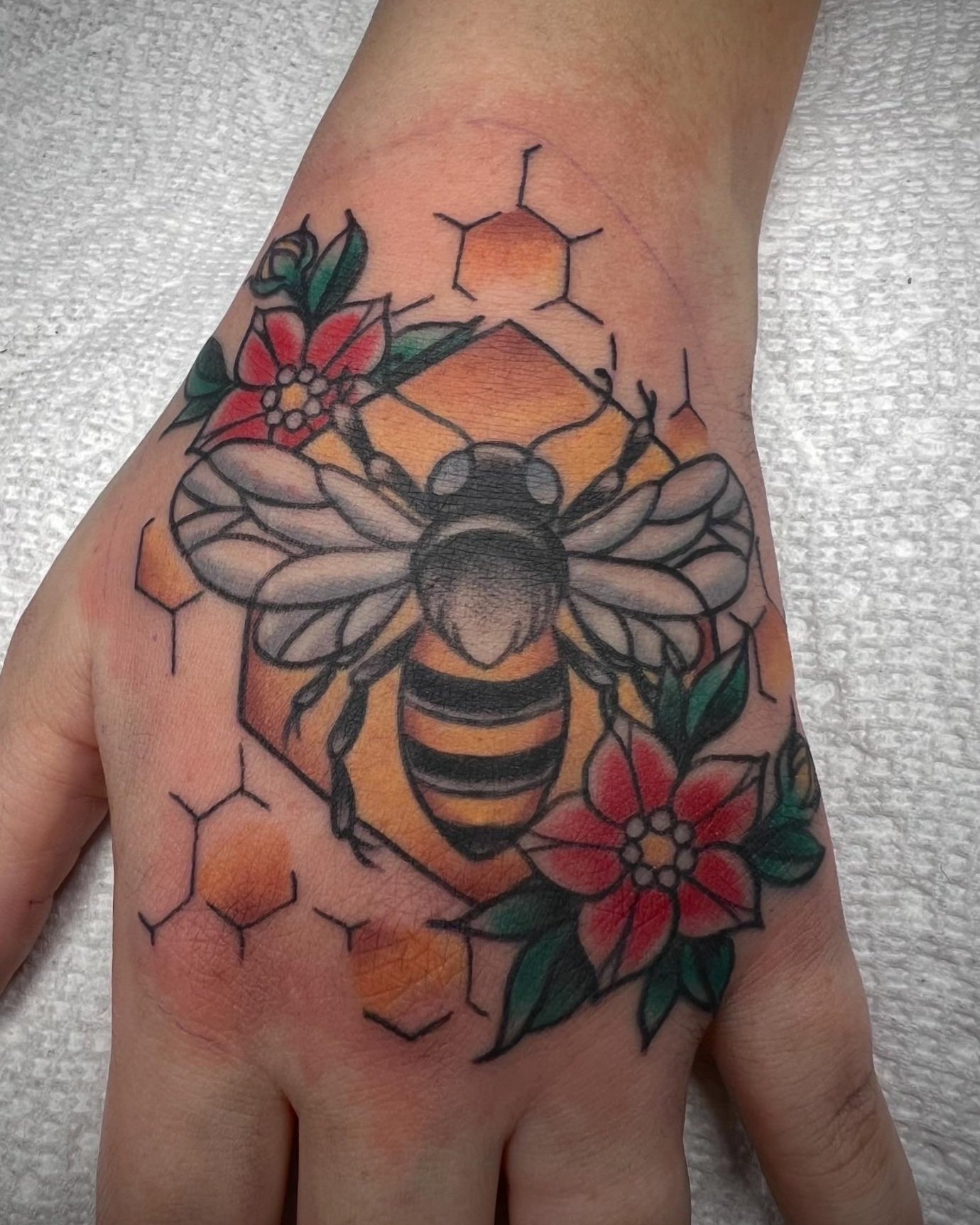 "I couldn't be happier with the beautiful hand tattoo Lauren did for me. I just sent her a few pictures, and she created the perfect bee design for me. Being that it was a hand placement, I wasn't the most graceful. Lauren had amazing bedside manner, and the experience couldn't have been more comfortable. I look at my hand everyday, and I see how much effort she puts into her art. To anyone looking for a tattoo artist that checks off every box, I'll recommend her over and over again."