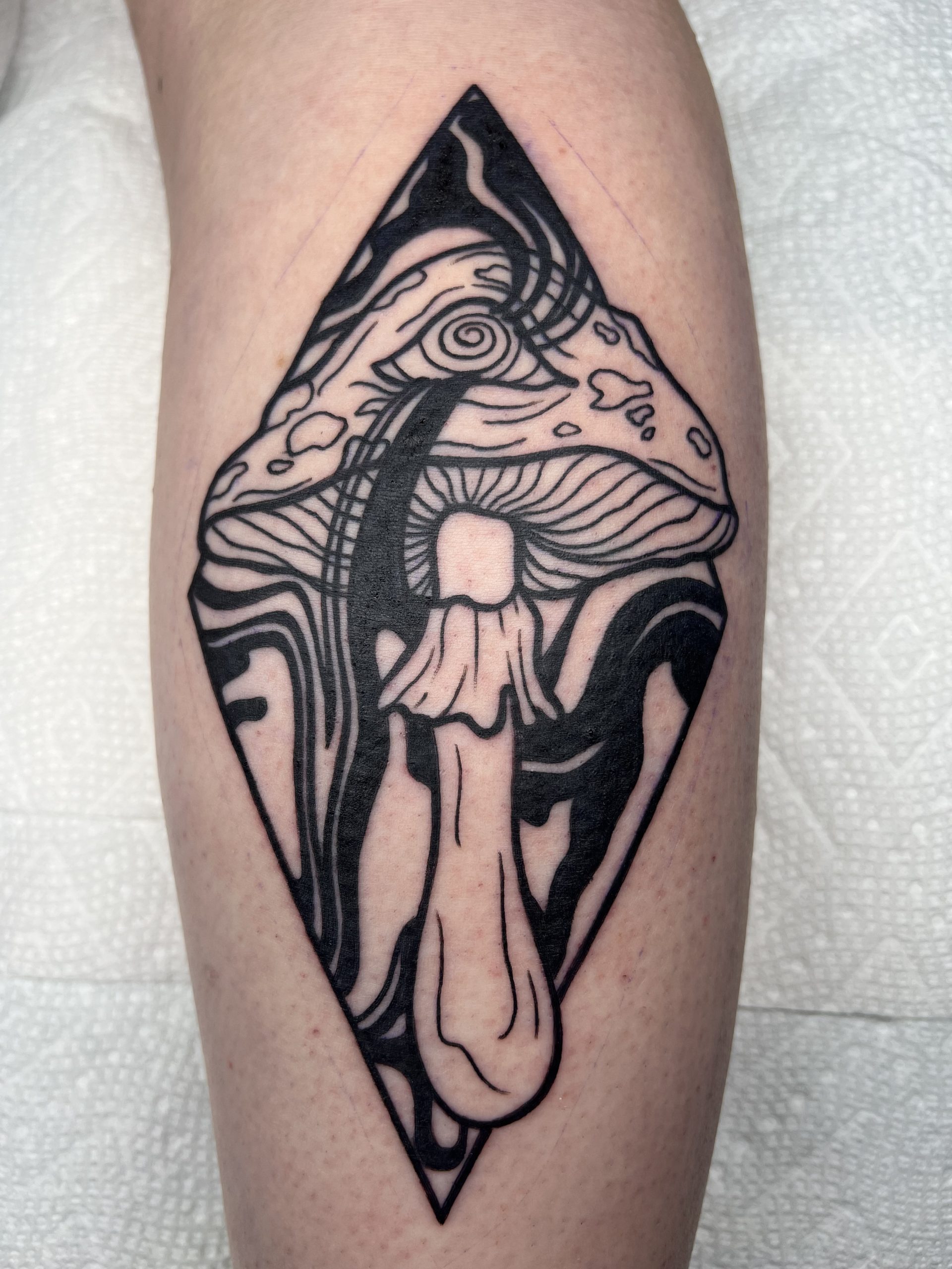 "I have gotten both of my tattoos from Lauren and both experiences have been phenomenal. My mushroom tattoo on my calf is especially phenomenal! Lauren was very informative on my process, and she moved very quickly. I came to her with a design that I loved but Lauren switched it up and I ended up loving it even more. Lauren is an amazing artist and I can see her doing many if not all of my tattoos in the future!" -Madilyn Ward